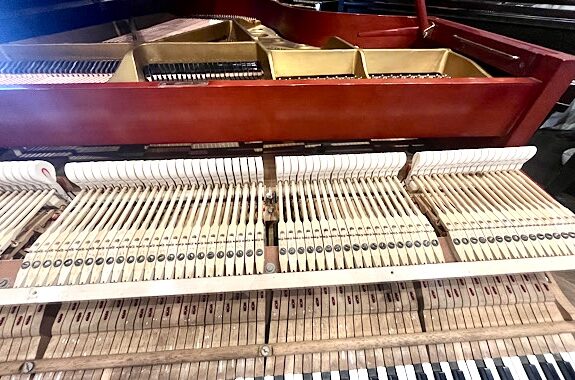 今回のフルオーバーホールにあたっては、演奏性をさらに向上させるため、アクションのサポート部を現代仕様のダブルスプリングへと換装いたしました。これにより、ヴィンテージ特有の深みのある音色と、現代ピアノのようなスムーズなタッチを両立させています。